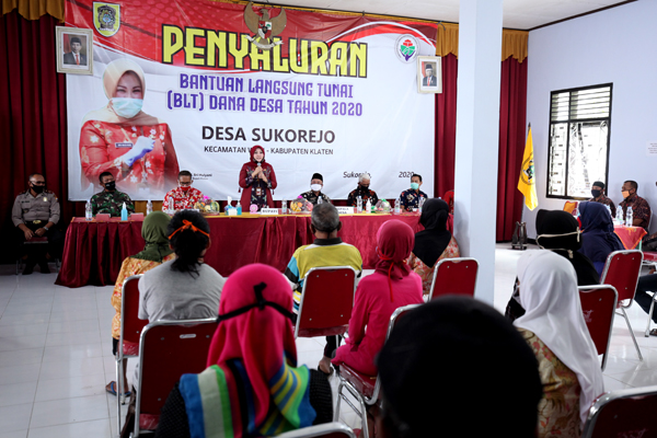 Bupati Klaten Sri Mulyani menegaskan perangkat desa tidak boleh menerima bantuan sosial. Bantuan sosial yang terkait dengan Covid-19 tidak dibenarkan diterimakan kepada PNS, TNI/Polri, pensiunan, dan kepala desa beserta perangkatnya.