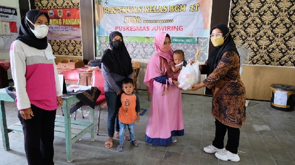 “Kami pantau setiap bulan melalui kekompok penimbangan balita. Selain ditimbang berat badannya juga diberikan penyuluhan cara memberikan gizi yang baik dan tepat untuk anak usia balita dari Petugas Gizi Puskesmas Juwiring,” ujarnya, Jumat (15/10/2021) pagi.