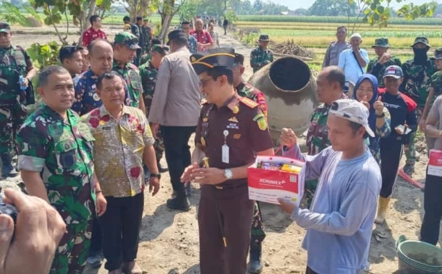 Wakil Asisten Teritorial (Waaster) Panglima TNI Brigjen TNI (Mar) Werijon mengunjungi Desa Tambong Wetan, Kecamatan Kalikotes, Kabupaten Klaten untuk melihat langsung pelaksanaan Program TNI Manunggal Membangun Desa (TMMD) Reguler 121 Tahun Anggaran 2024 Kodim 0723 Klaten.